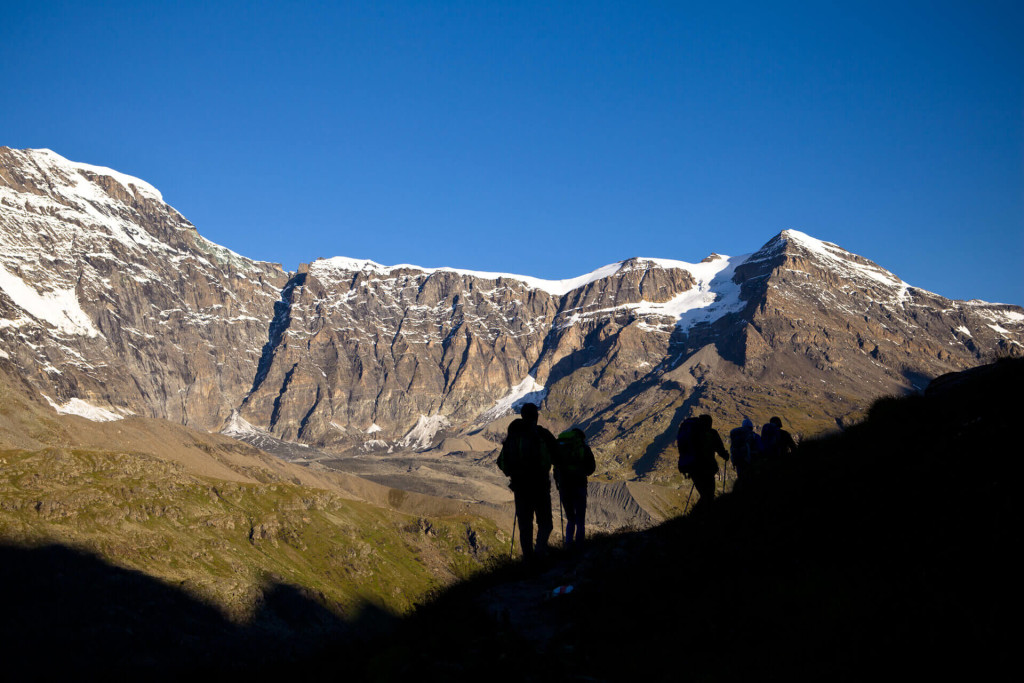 Europa Hütte – Zermatt. Самый сложный и требовательный этап нашего тура, проходит по горной тропе, которая в некоторых местах вырублена в скалах, которая ведет через туннели, скальные галереи и подвесные мосты. Это путь с великолепной панорамой на Валлиские четырех-тысячники и достойный заключительный аккорд нашего тура, длиной почти в 100 километров.